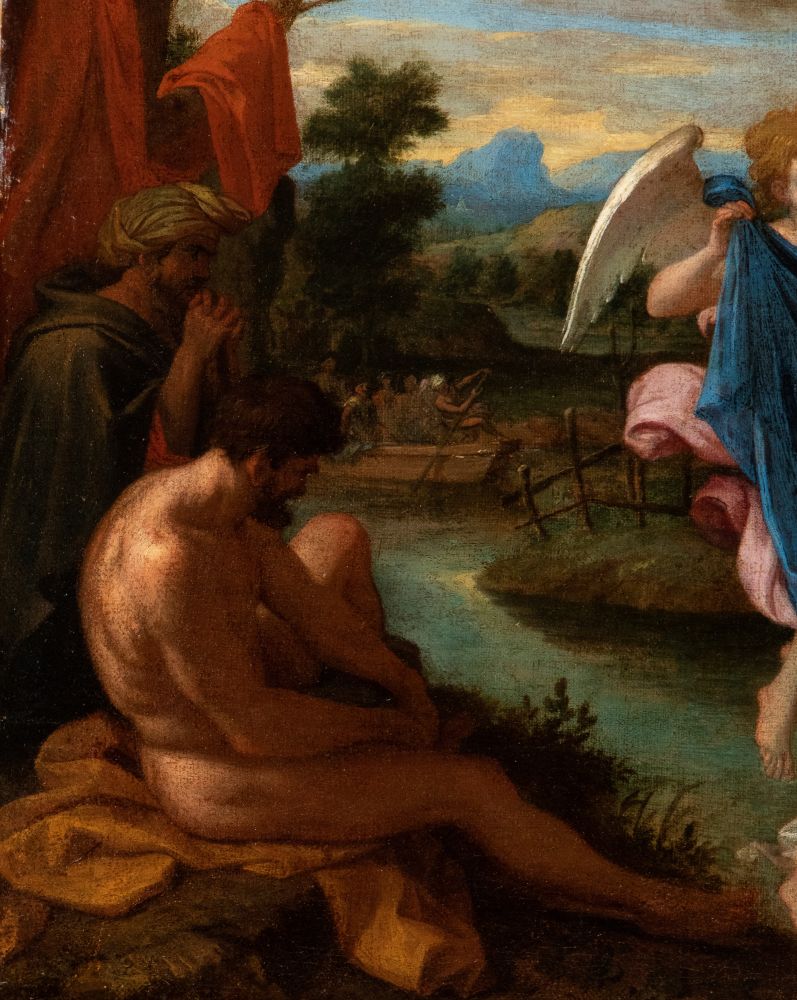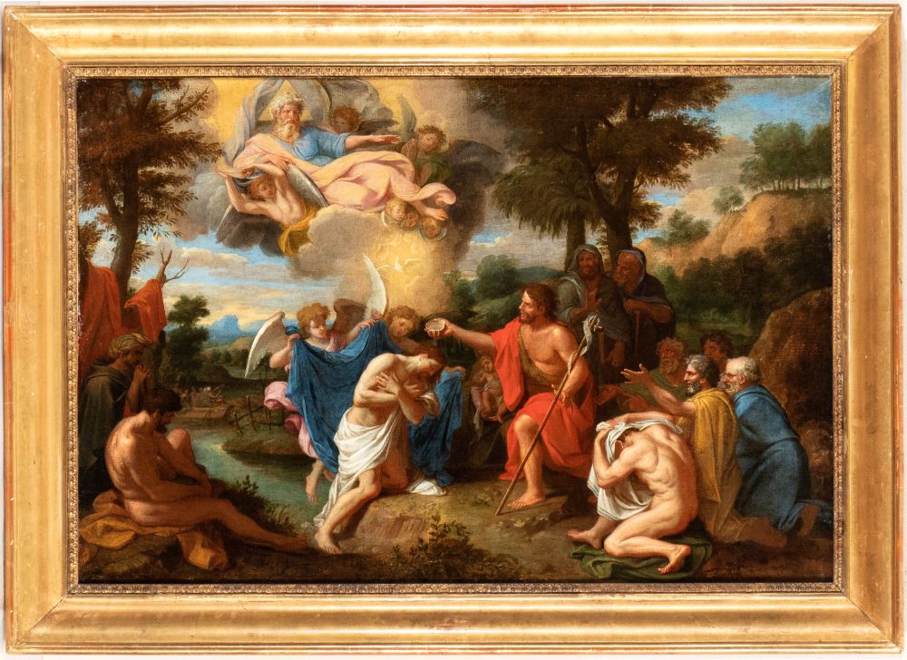 Artista emiliano, XVII secolo Battesimo di Cristo Olio su tela cm. 51,5x75,5....