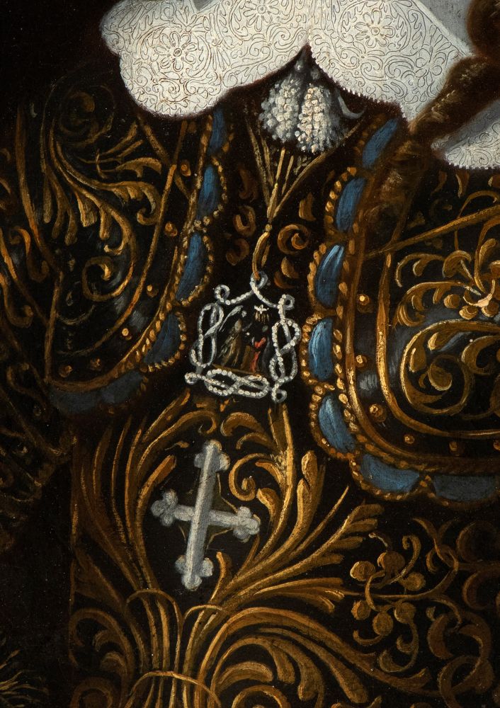 Il dipinto costituisce una notevole prova ritrattistica di Filiberto Torret detto il Narciso, attivo presso la corte di Cristina di Francia a Torino. La formazione di Torret avvenne fra Parigi e Lione, sotto l'influsso, oltre che della coeva pittura francese, degli artisti fiamminghi presenti a quel tempo a Parigi, a partire da Frans Pourbus. Ne recano testimonianza in questa tela sia la preziosa materia pittorica, sia il gusto lenticolare dei dettagli. Spicca qui, in particolare, la fissità distaccata e vagamente sorniona dell'effigiato, nonché la mirabile accuratezza nella rappresentazione dell'armatura, con il particolare quasi miniaturistico del medaglione raffigurante l'Annunciazione, subito sopra la croce.