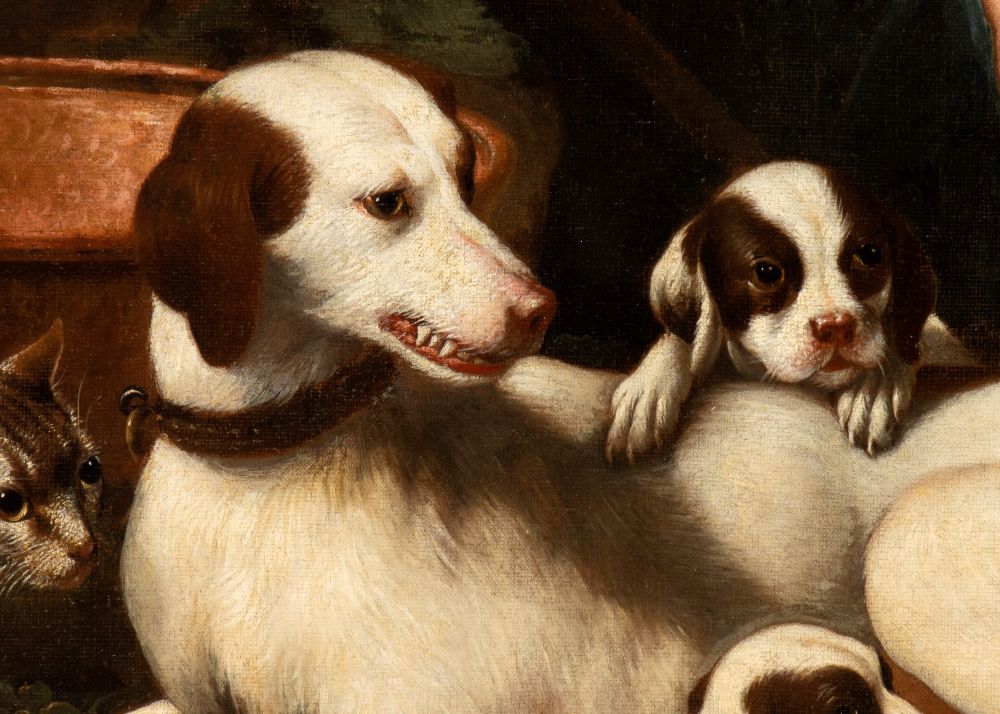 La sigla Maestro degli armenti, come quelle alternativamente adottate di Pseudo-Salini, Maestro di Baranello e da ultimo Maestro del Bacco, è il frutto della necessaria scomposizione del vasto e confusissimo corpus che fino a pochi decenni fa era radunato sotto il nome di Tommaso Salini. Caratteristica costante delle opere reclutate all'interno di questo nome fittizio, che quasi certamente dovrà in futuro essere ulteriormente scomposto in più personalità distinte, è la presenza, accanto alla figura principale (per lo più figure singole di giovani pastori o contadini), di animali domestici e da cortile. Questi ultimi, peraltro, potrebbero talora non essere della stessa mano, tant'è che in alcuni esemplari si è ritenuto di riconoscere l'intervento di Jacob van der Kerckhoven, noto anche come Giacomo Castello (1636-1712 c.), consentendo così di spostare alla seconda metà del Seicento l'attività dello stesso Maestro degli Armenti. In ogni modo nelle opere a lui assegnate è evidente la presenza di elementi romani post-caravaggeschi (Salini e Spadarino) ma anche napoletani (Sellitto). Il nostro dipinto si lega ad altri numeri riferiti al Maestro degli Armenti come il Pastore musico e animali, il Pastore con cani e fiasche e la Donna con pollame, tutti in collezione privata. Meritano di essere specificamente segnalate nella nostra tela la qualità omogeneamente alta della riproduzione degli animali, fra i quali sono ricorrenti il gatto e la scimmietta, il bel volto ancora latamente caravaggesco del ragazzo, nonché il profondo paesaggio sul lato sinistro, col lungo corso d'acqua che si perde sulla linea dell'orizzonte.
