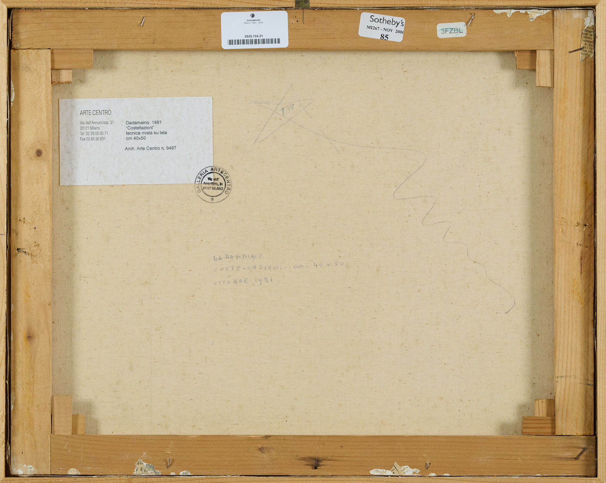 Etichetta e timbro "Arte Centro", Milano.