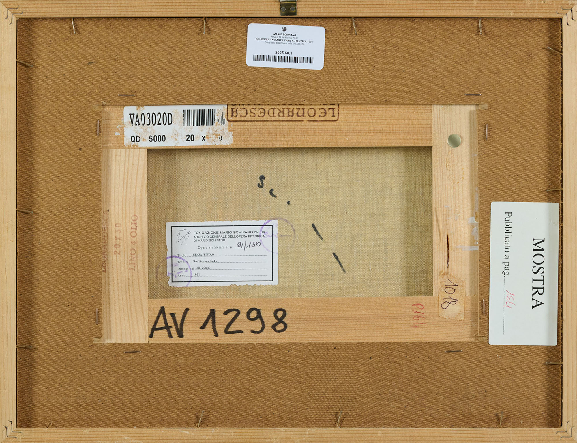 Sul verso: firma ed etichetta "Fondazione Mario Schifano", con descrizione ed Archivio n° 91/180.