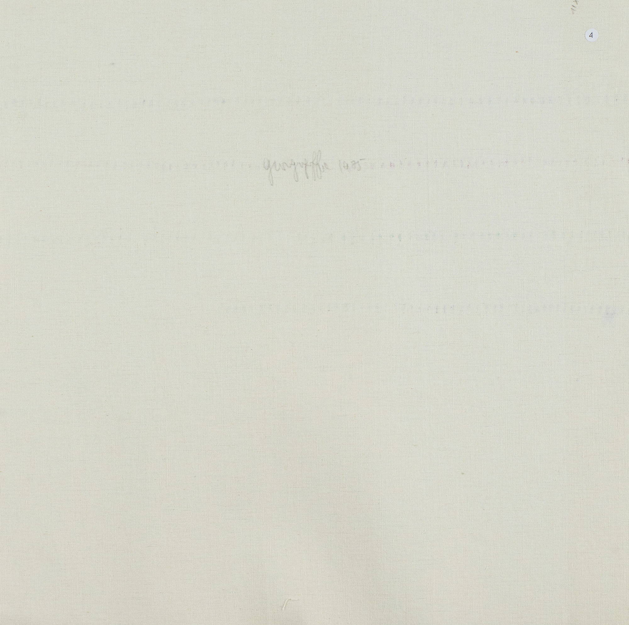 Autentica dell'Archivio "Giorgio Griffa", Torino, con firma dell'Artista, timbro a secco "Archivio Giorgio Griffa" con descrizione ed archivio n° AGG1975-134.