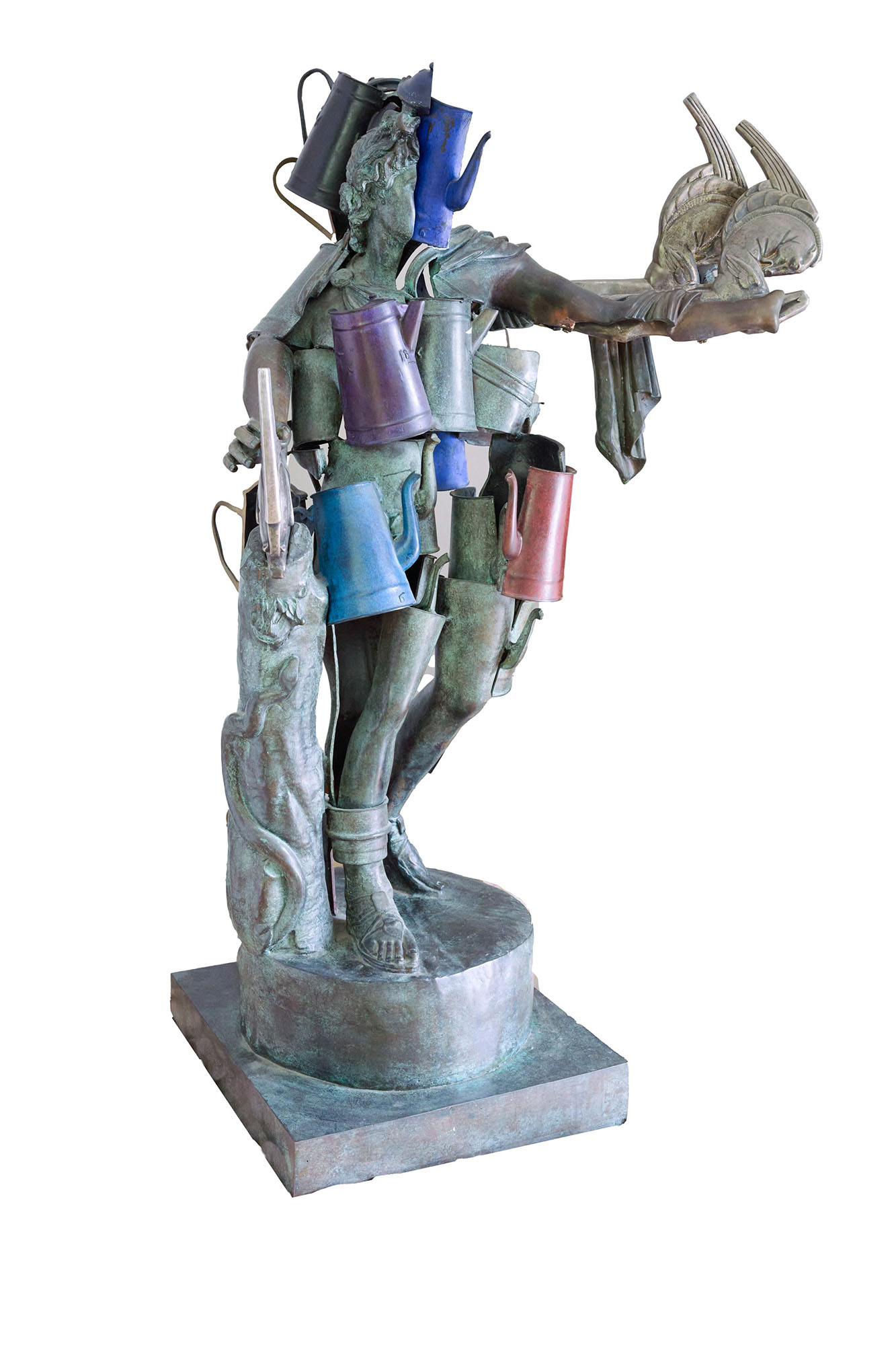 statua in bronzo di Apollo con caffettiere in acciaio inossidabile cm 155,5x93x63