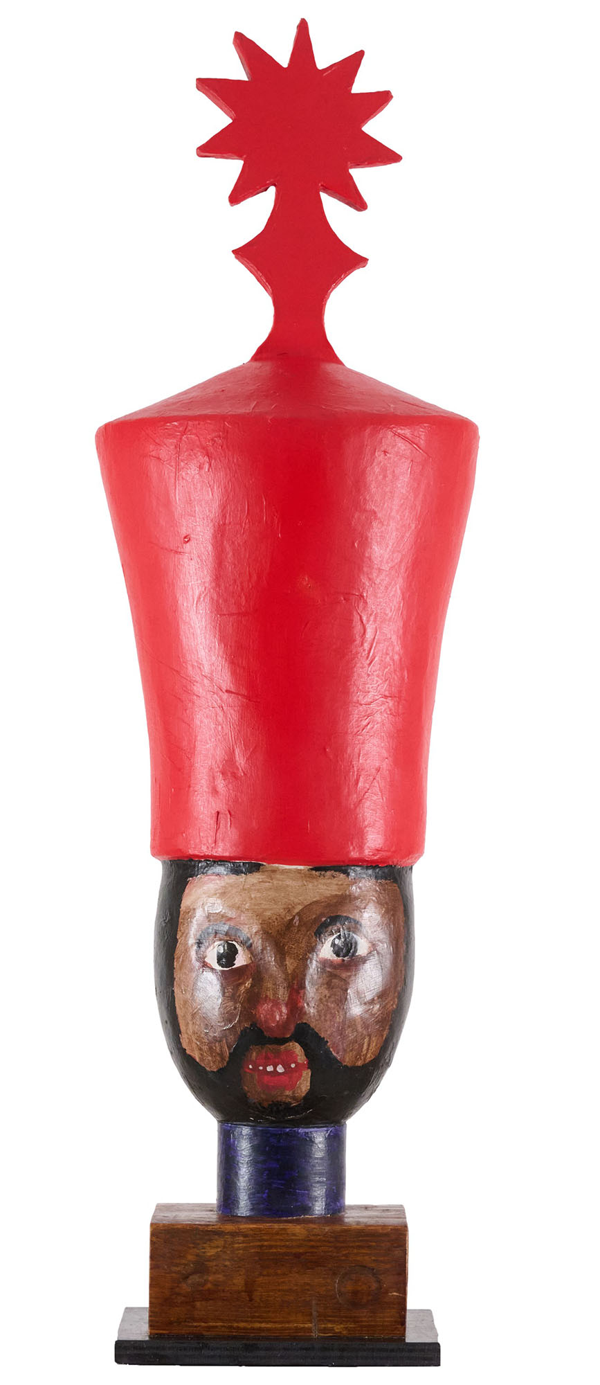 - "Gaspare", Scultura in cartapesta dipinta su base di legno, cm. 83x36x32.