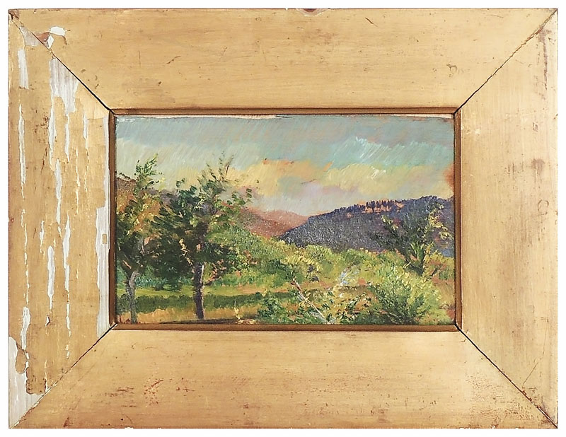 GAETANO SPINELLI (1887-1945) Paesaggio campestre olio su tavoletta, in cornice cm 10,5x16,5 COUNTRY LANDSCAPE, OIL ON PANEL