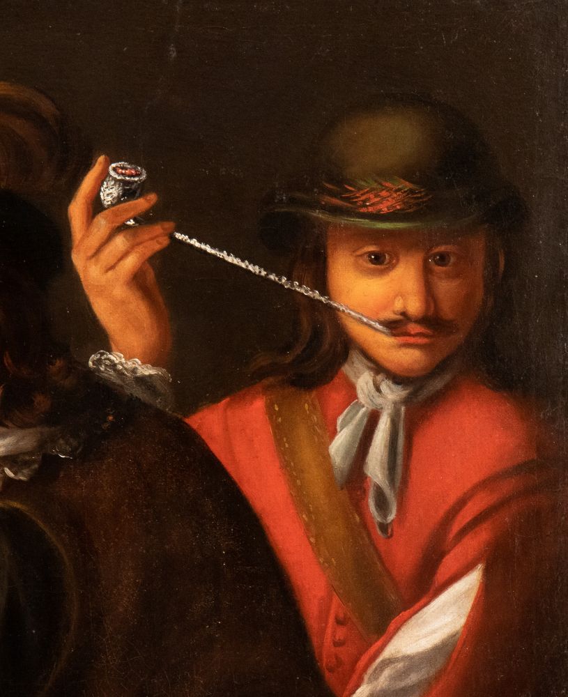 Artista nord-europeo, XVIII secolo Giocatori di carte Olio su tela cm. 66x21,5
