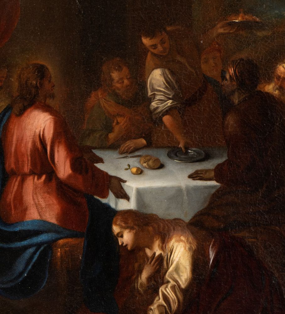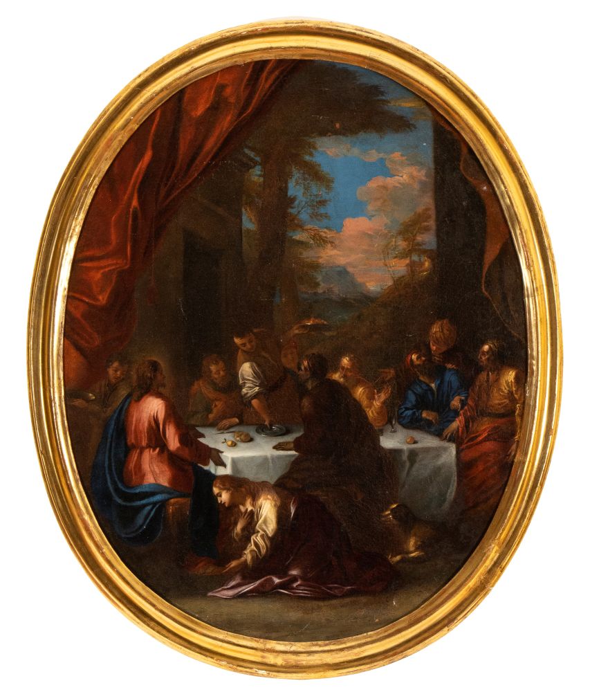 Artista emiliano, XVIII secolo Lavanda dei piedi Olio su tela cm. 83x65. Con...