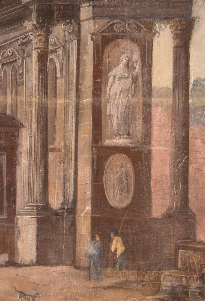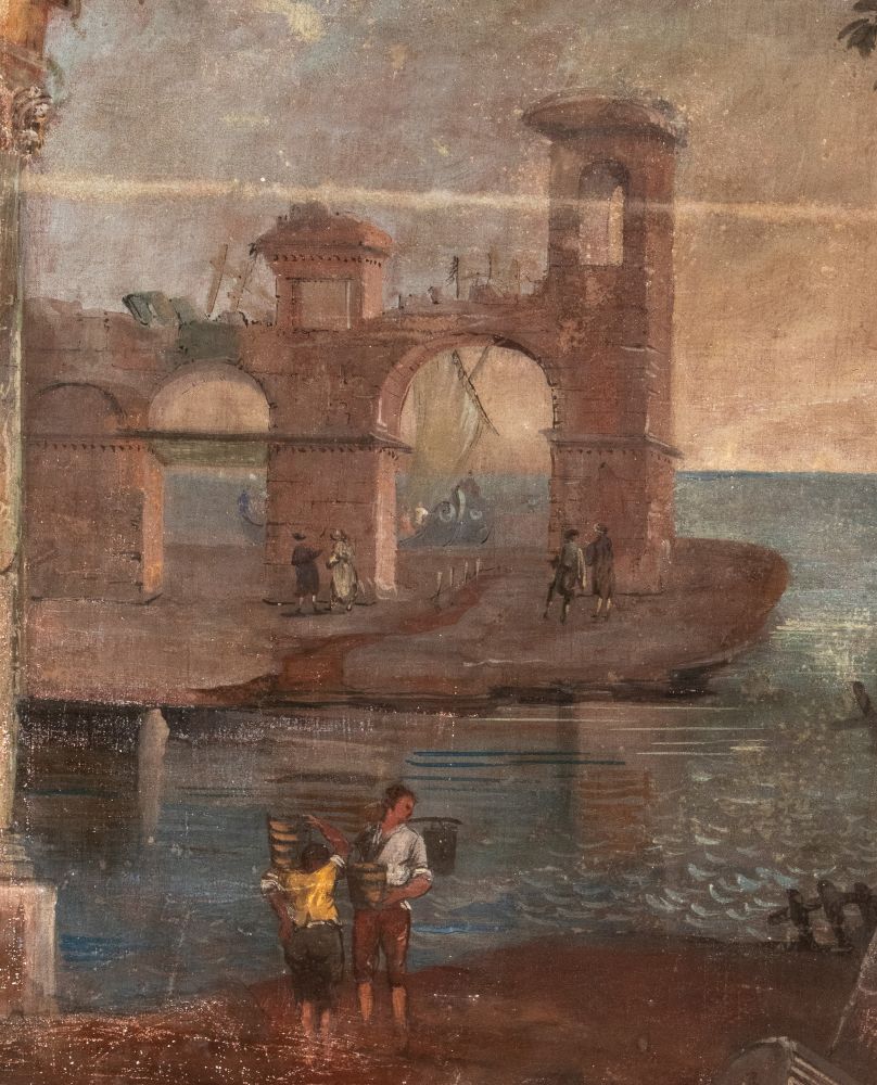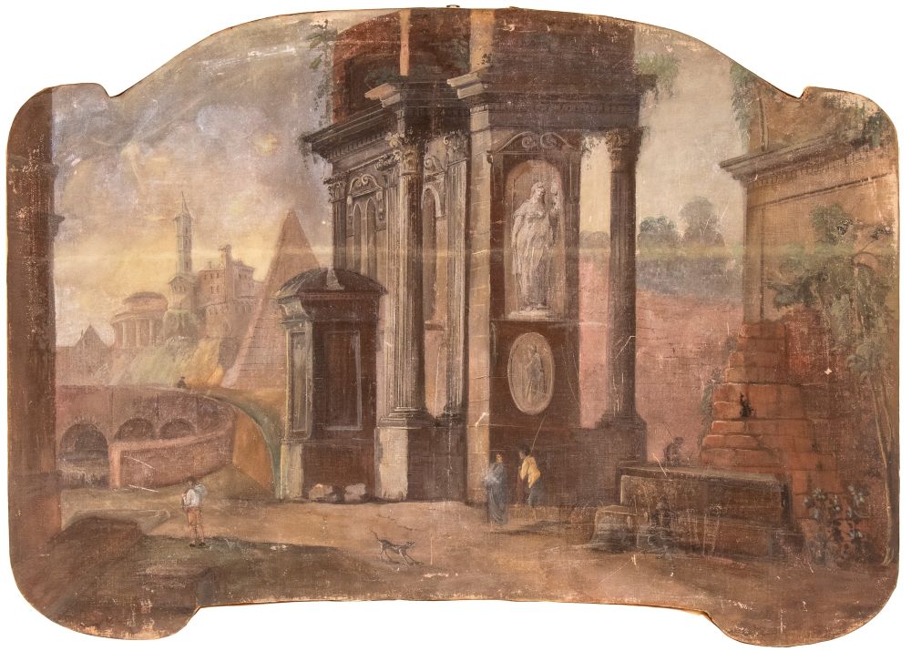 a) Capriccio costiero con figure; b) Capriccio architettonico con figure. Coppia di dipinti
