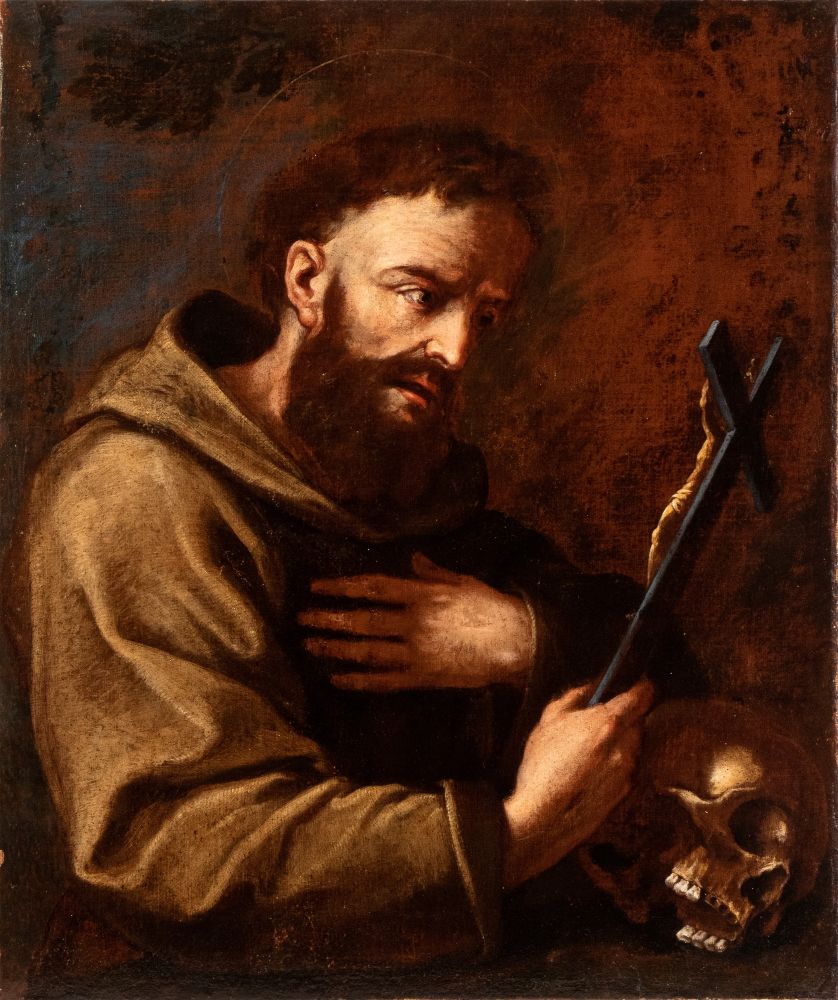 Lotto 119 | Artista emiliano, XVII secolo San Francesco in adorazione del crocifisso Olio...