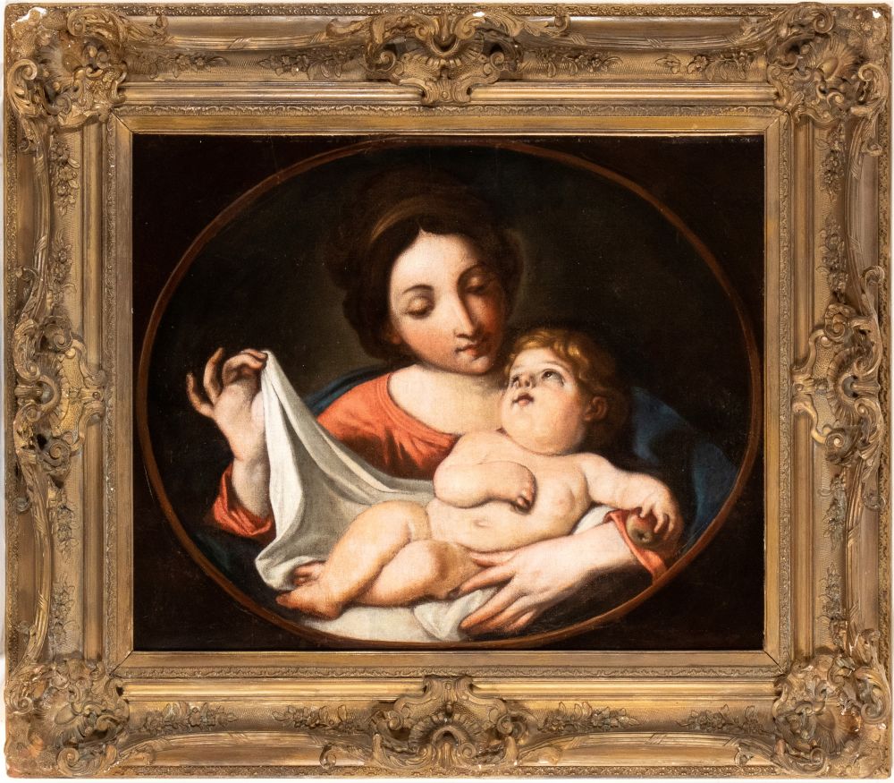 Artista emiliano, XVII secolo Madonna con Bambino Olio su tela cm. 61x74,5....