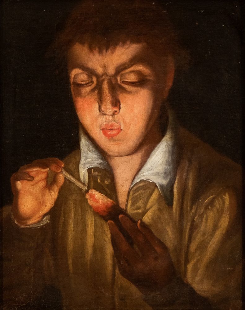 El Greco (copia da) (Candia, 1541 - Toledo, 1614) Giovane che soffia su un...