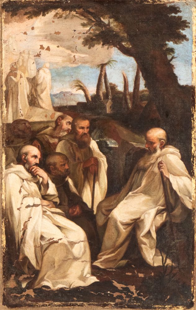 Il dipinto è una replica antica della celebre composizione di Andrea Sacchi, nota in più redazioni, la più importante delle quali conservata presso la Pinacoteca Vaticana, a Roma.