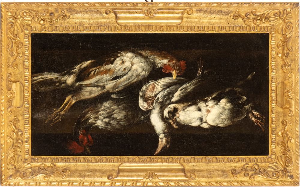 Artista fiammingo, XVII secolo Natura morta di cacciagione Olio su tela cm....