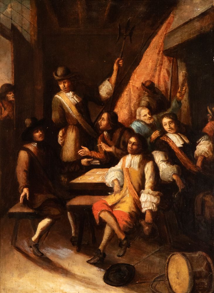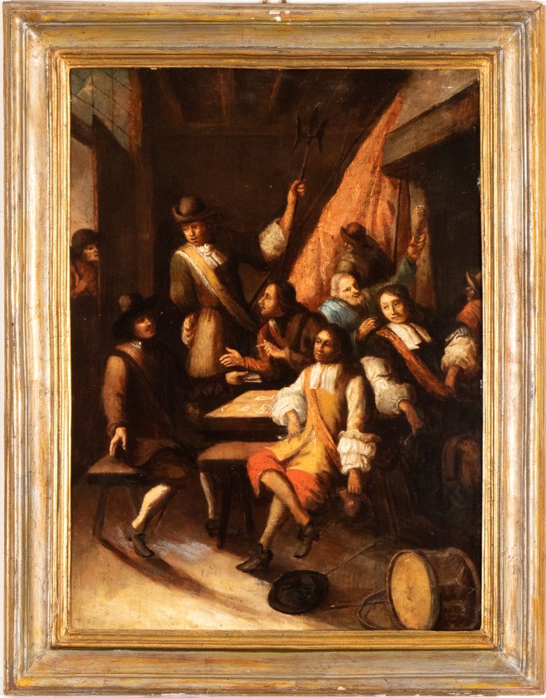 Lotto 176 | Artista olandese, XVII - XVIII secolo Interno d'osteria con giocatori di...