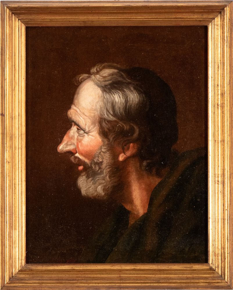 Artista attivo a Roma, XVII secolo Testa virile di profilo Olio su tela cm....