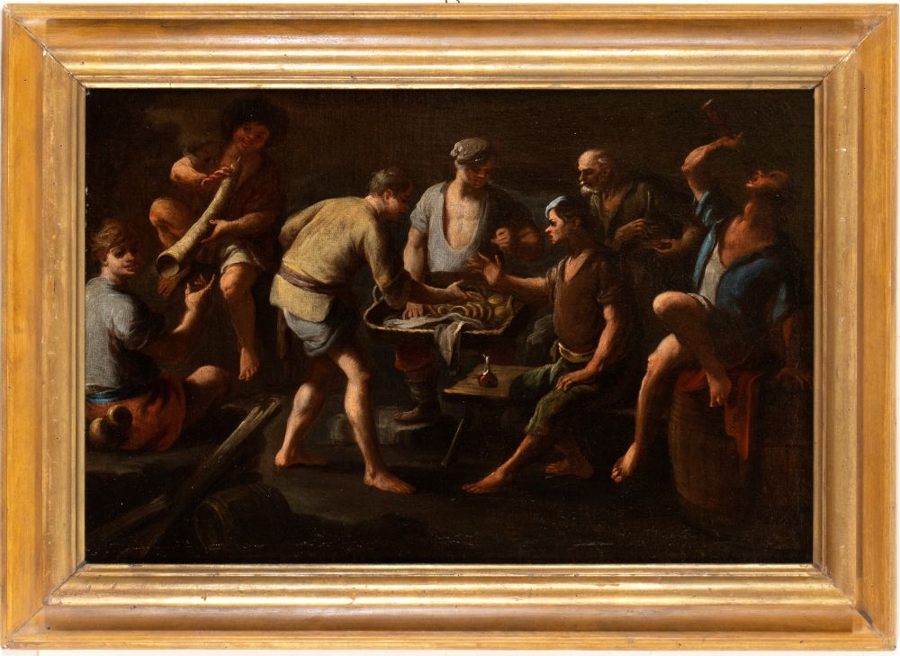 Artista attivo a Napoli, seconda metà XVII secolo Interno di osteria Olio su...