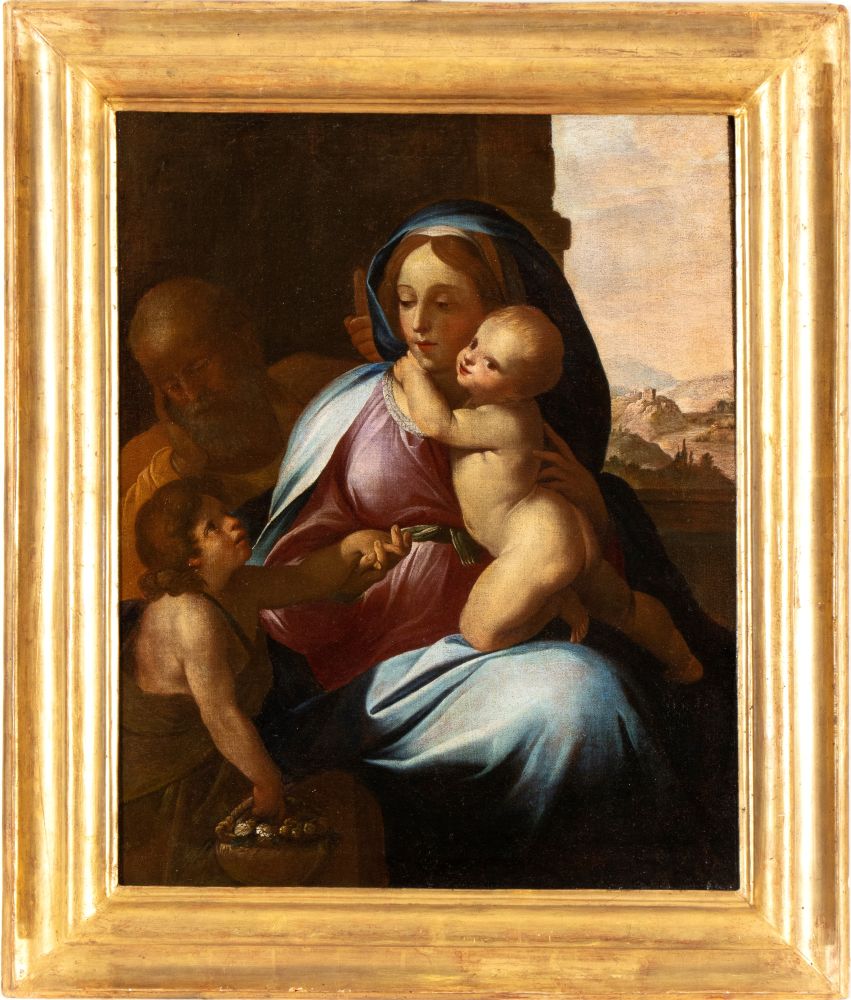 Ventura Salimbeni (Siena, 1568 - 1613) Sacra Famiglia con San Giovannino Olio...