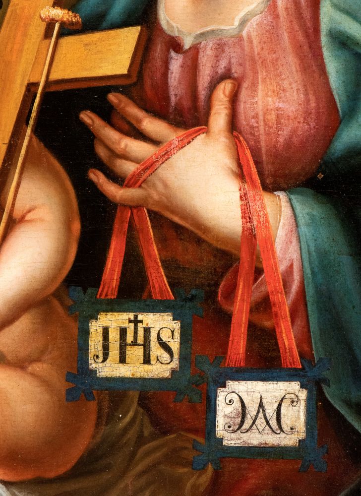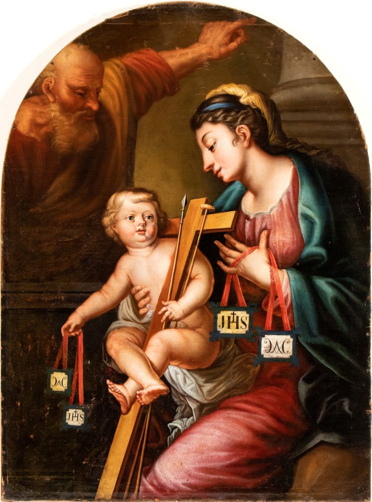 Artista genovese, XVIII secolo Sacra Famiglia con i simboli della passione...