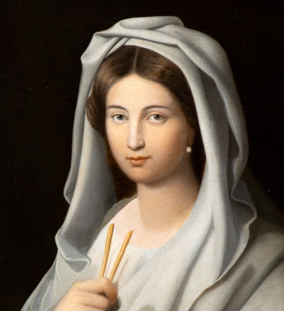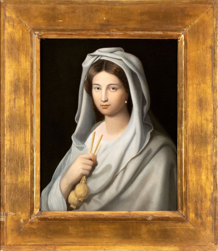 Artista neoclassico, XIX secolo Ritratto di donna velata con papaveri da...