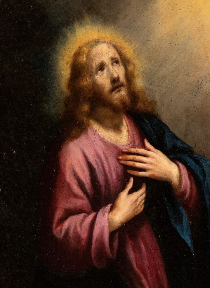 Artista emiliano, XVII secolo Orazione nell'orto Olio su tavola cm. 59,5x42