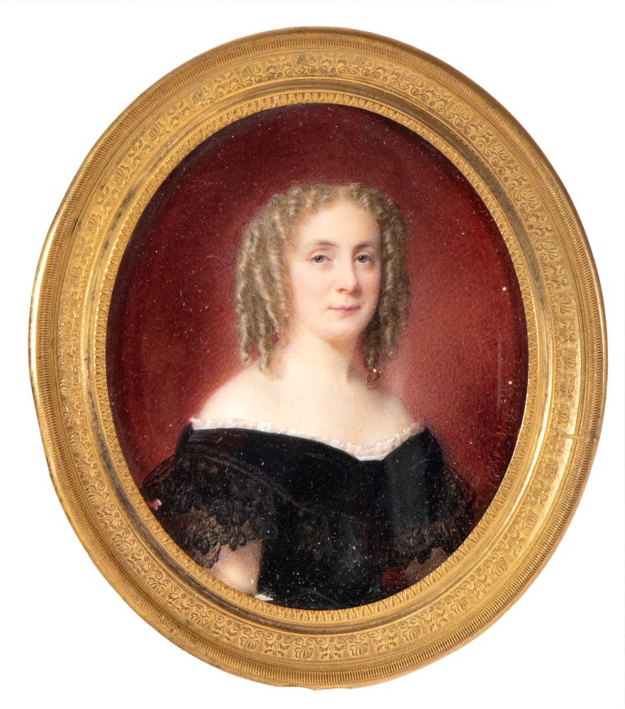 Cécile Villeneuve (Parigi, 1824 - 1901) Ritratto di dama con boccoli biondi...