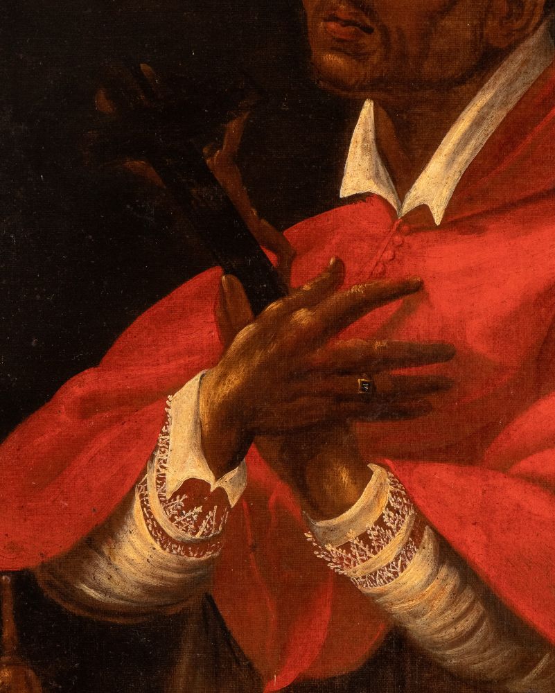 Artista attivo a Roma, XVII secolo San Carlo Borromeo in preghiera Olio su...