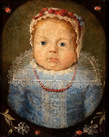 Artista fiammingo, XVII secolo Ritratto di infante con collana di corallo...