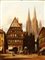 Henry Thomas Schafer (Londra, 1854 - 1916) Veduta cittadina con chiesa gotica...