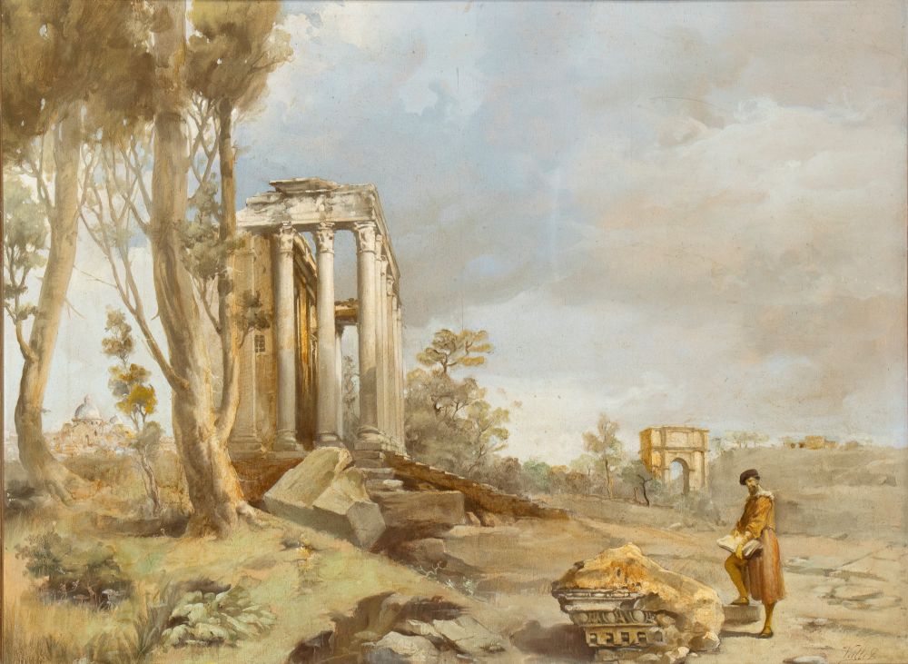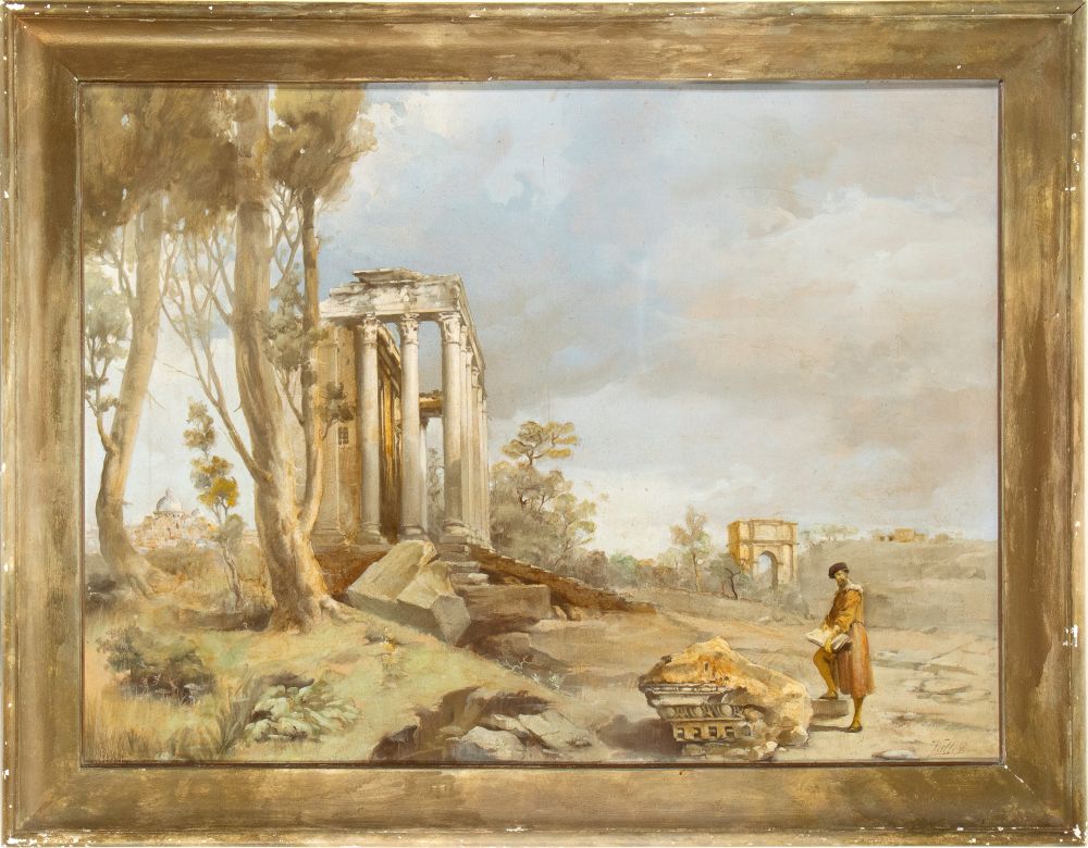 Artista italiano, fine XIX - inizio XX secolo Arista presso ruderi della...