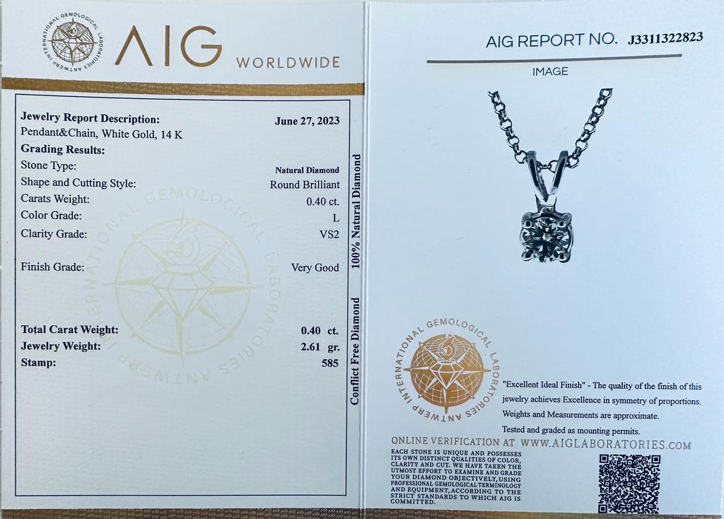 GIROCOLLO ORO BIANCO 14K 0.60 GR CON DIAMANTI PER 0.40 CT L PUREZZA VS2 42-44CM CERTIFICATO AIG - PND30604 - COMMISSIONE D’ASTA 25%