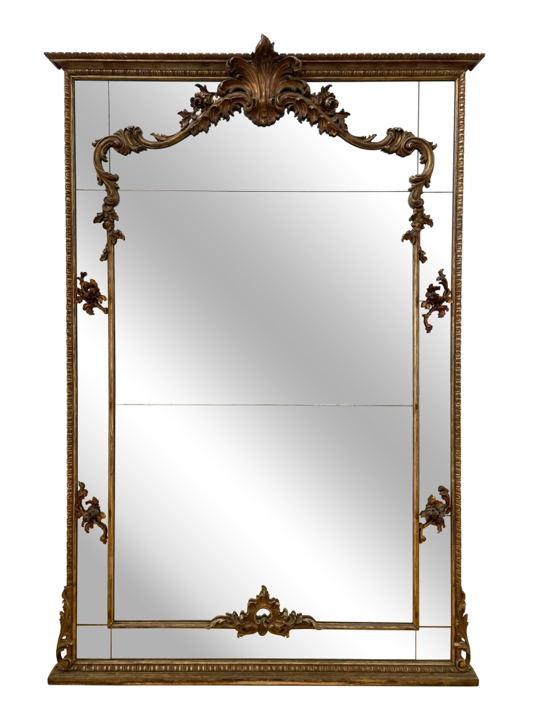 Grande specchiera in legno dorato e intagliato XX secolo cm 210x145,5