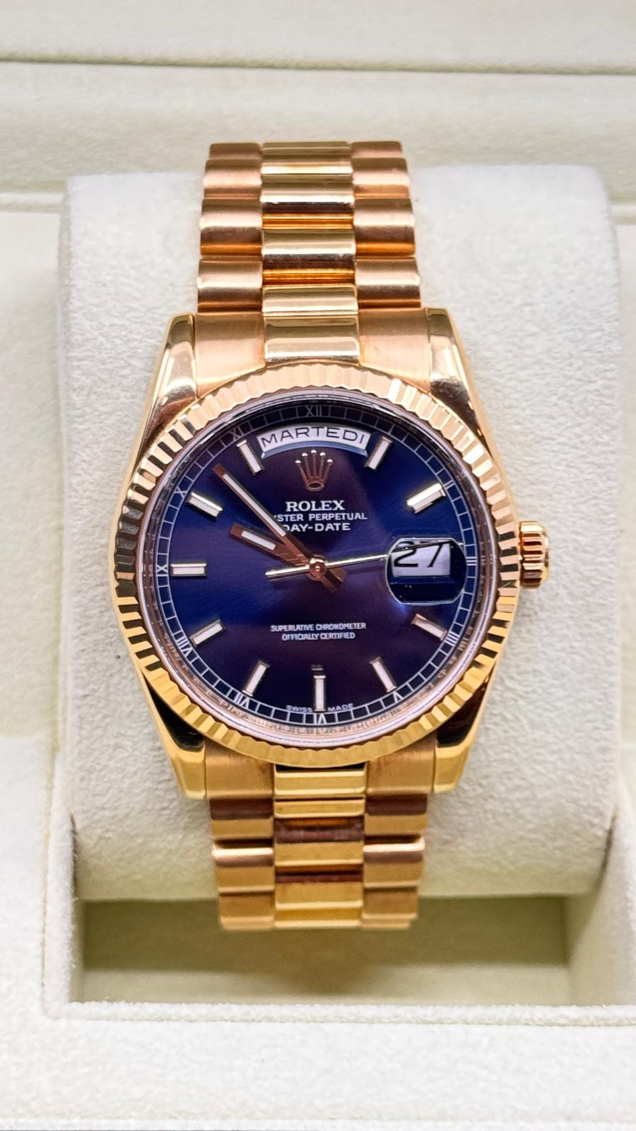 Marca Rolex Modello (Orologio) Day-Date 36 Numero di referenza 118238 Carica Automatico Materiale della cassa Oro giallo Materiale cinturino Oro giallo Anno di produzione 2007 Condizione Ottimo (di seconda mano, segni di usura assenti o appena visibili) Corredo documenti originali, no box Carica Automatico Materiale della cassa Oro giallo Diametro 36 mm Impermeabile 10 ATM Materiale lunetta Oro giallo Vetro Vetro zaffiro Numeri sul quadrante Senza numeri Cinturino Materiale cinturino Oro giallo Colore cinturino Oro Materiale chiusura Oro giallo - COMMISSIONE D’ASTA 25%