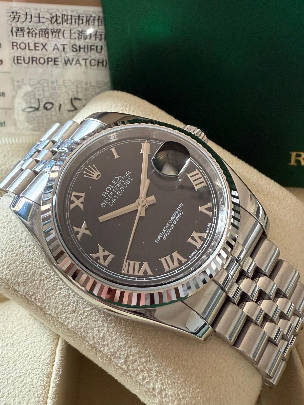 Marca Rolex Modello (Orologio) Datejust 36 Numero di referenza 116234 Carica Automatico Materiale della cassa Acciaio Materiale cinturino Acciaio Anno di produzione 2007 Condizione Usato (Ottimo) L'articolo presenta segni di usura lievi, come ad esempio graffi leggeri, ma non percepibili al tatto Corredo Con documenti originali, senza scatola originale Carica Automatico Cassa Materiale della cassa Acciaio Diametro 36 mm Impermeabile 10 ATM Materiale lunetta Oro bianco Vetro Vetro zaffiro Cinturino Materiale cinturino Acciaio Colore cinturino Acciaio Materiale chiusura Acciaio Funzioni Data - COMMISSIONE D’ASTA 25%