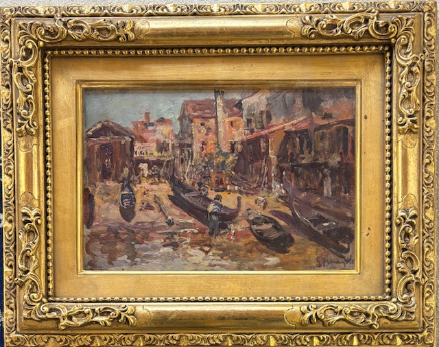 Francesco Margotti Torino 1868 - 1946 Tortona (AL) Burano Olio su cartone cm 15,5x22,5 firmato in basso a dx