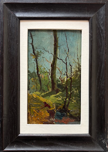 Anonimo del XIX secolo, Italia del nord XIX secolo Ruscello nel bosco Olio su tavoletta cm 22x13