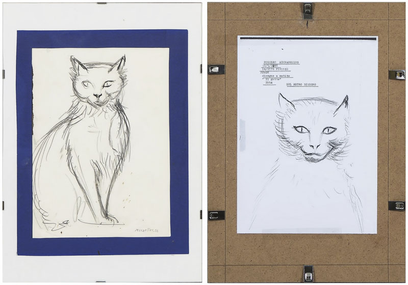 RUGGERO ALFREDO MICHAHELLES (1898-1976) Gatto 1954 matita su carta, al verso...