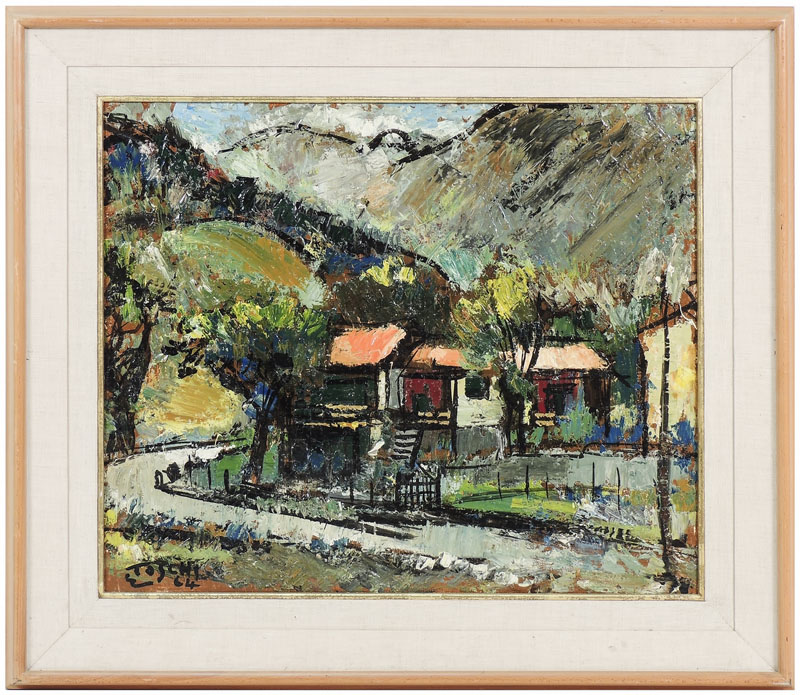 ERMANNO TOSCHI (1906-1999) Paesaggio campestre 1964 olio su tela, firmato e datato, in cornice cm 50x60 COUNTRY LANDSCAPE, OIL ON CANVAS