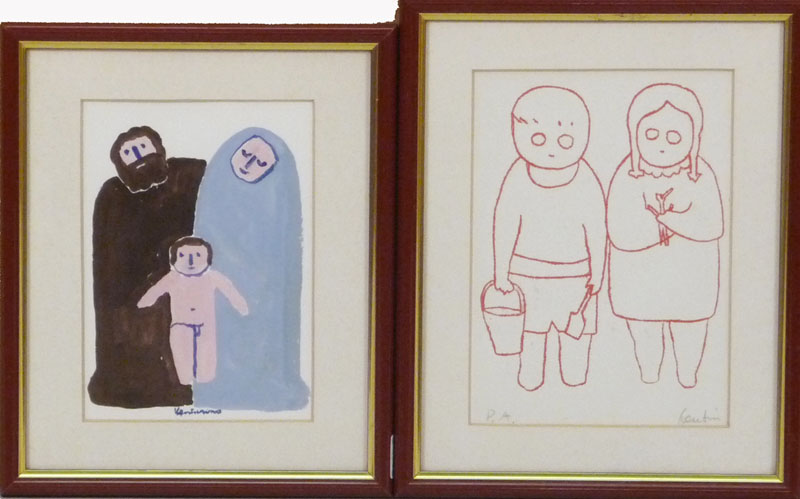 VENTURINO VENTURI (1918-2002) Sacra Famiglia Fanciulli una tempera su carta ed una litografia, firmate, in cornice cm 16x11, cm 17,5x12,5 (2) SACRED FAMILY AND CHILDREN, TEMPERA ON PAPER AND LITHOGRAPH
