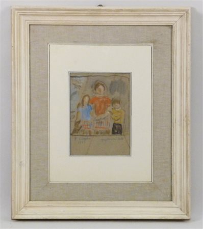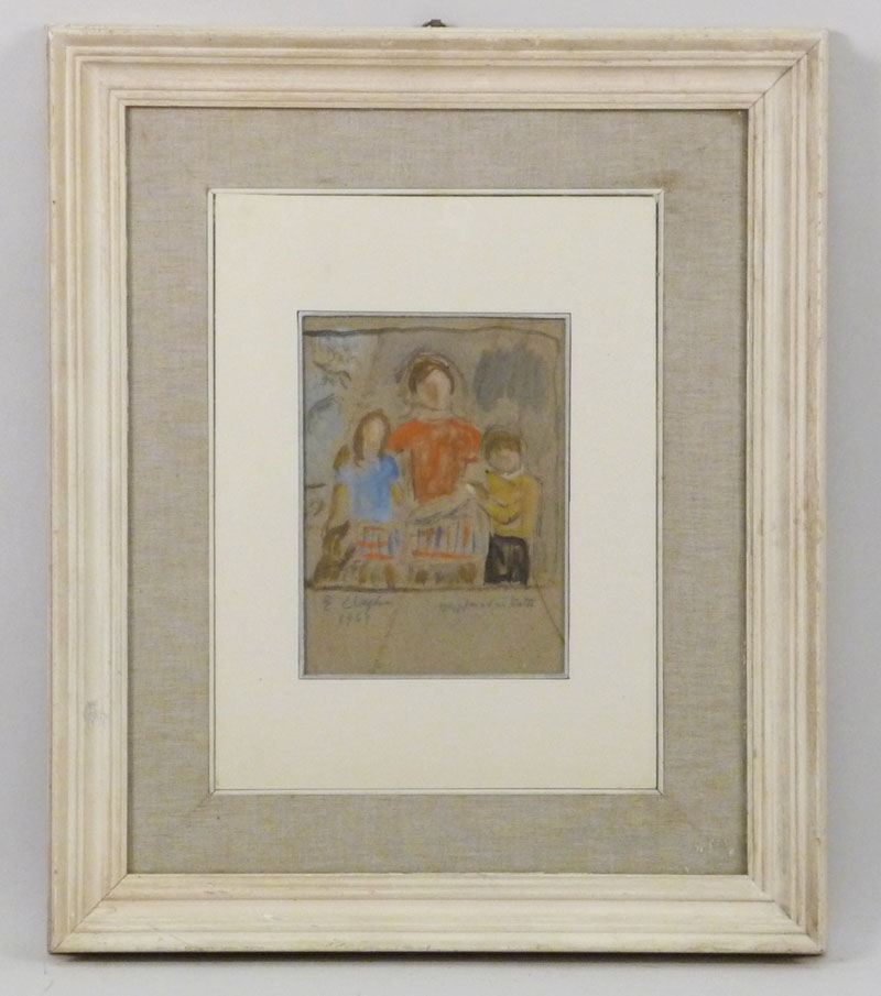 ELISABETH CHAPLIN (1890-1982) Figure 1969 bozzetto preparatorio a tecnica mista su cartoncino, firmato e datato, al verso reca iscrizione autografa datata 1971, in cornice cm 23x16,5 FIGURES 1969, MIXED MEDIA SKETCH ON CARDBOARD