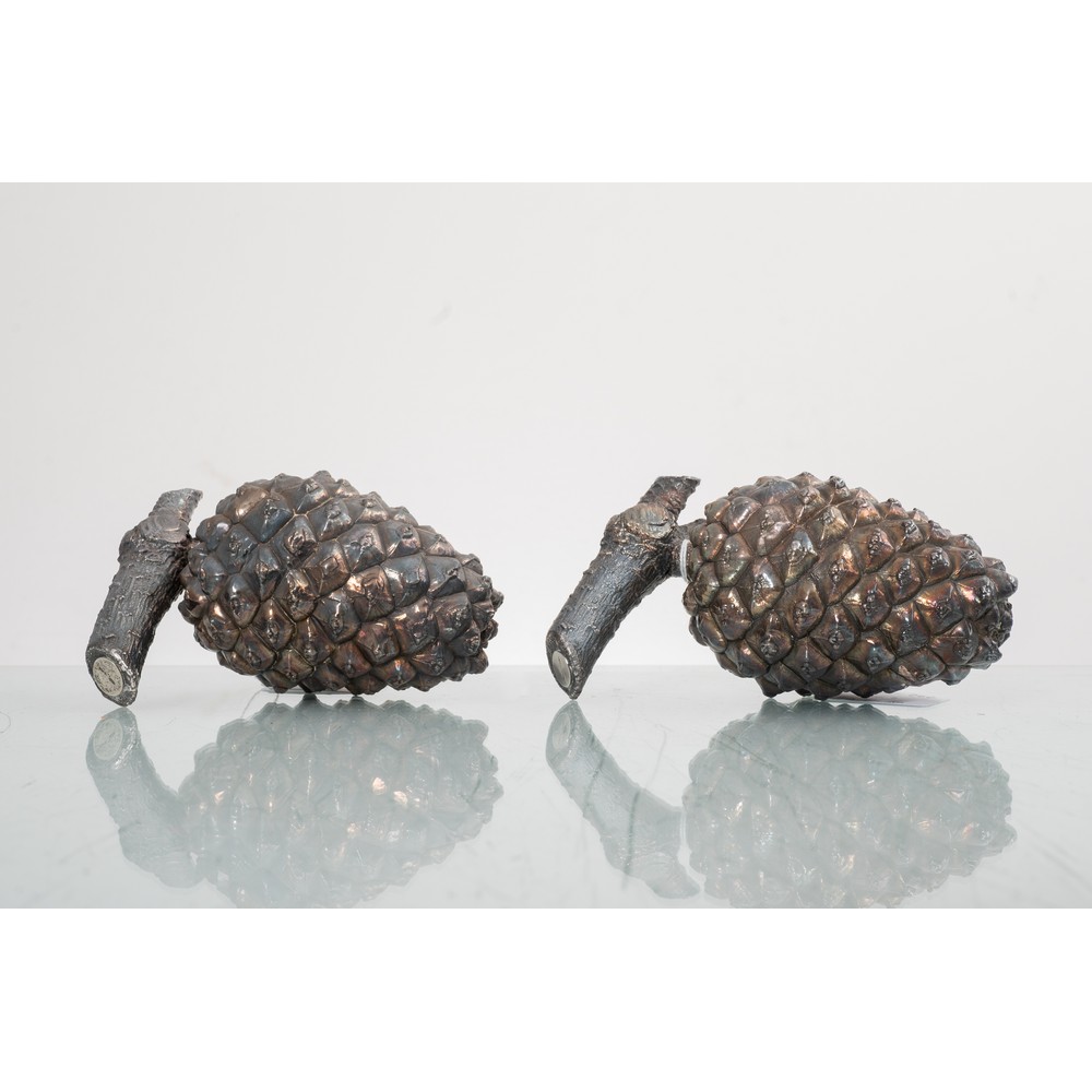 DUE SCULTURE in argento 800 e 925 raffiguranti "Pigne". Argentiere Bartolini Bartolozzi & C. - Firenze (g. 287) (lievi usure).