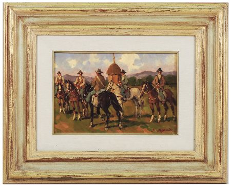 SERGIO DIFFICILI Butteri olio su faesite, firmato, in cornice cm 19x28...