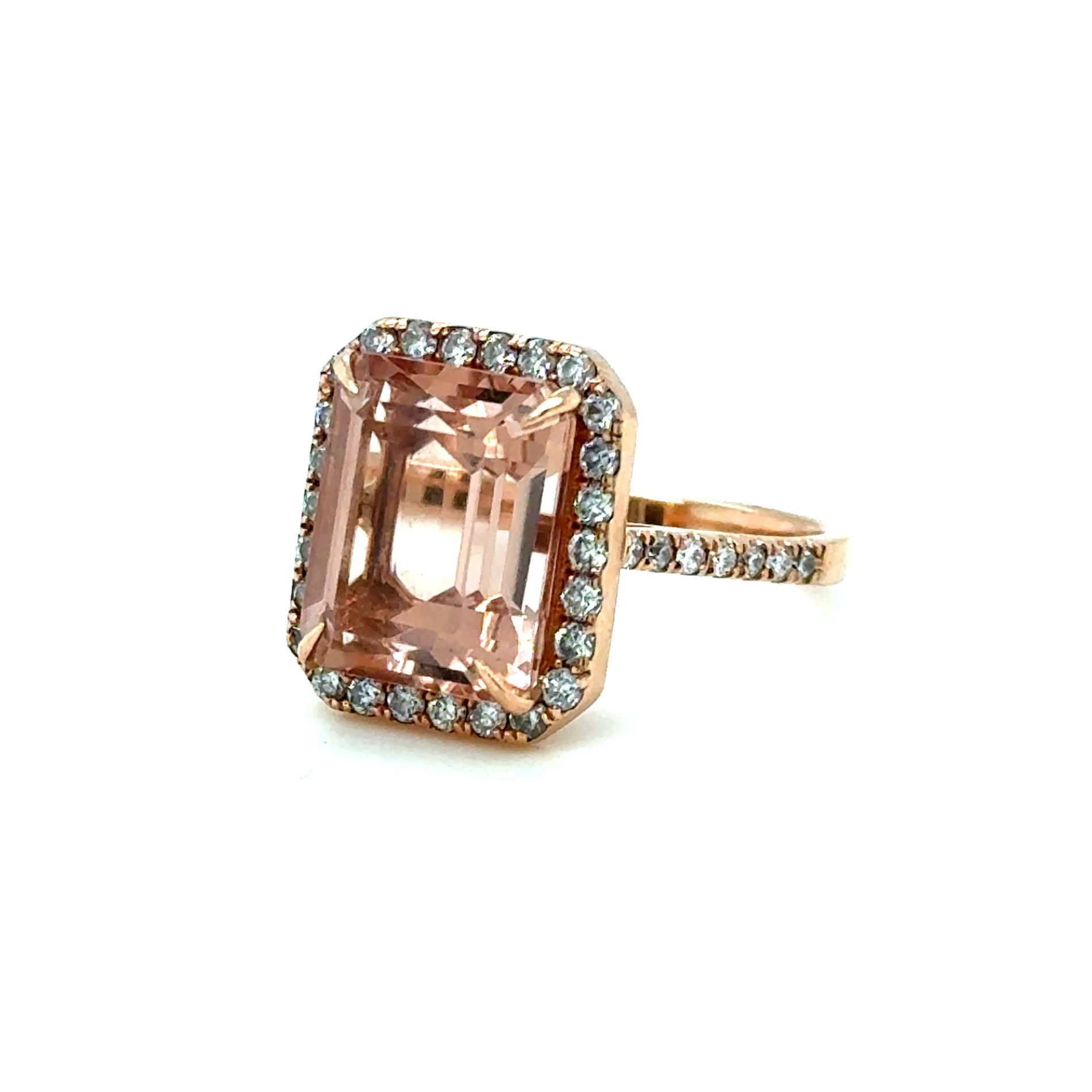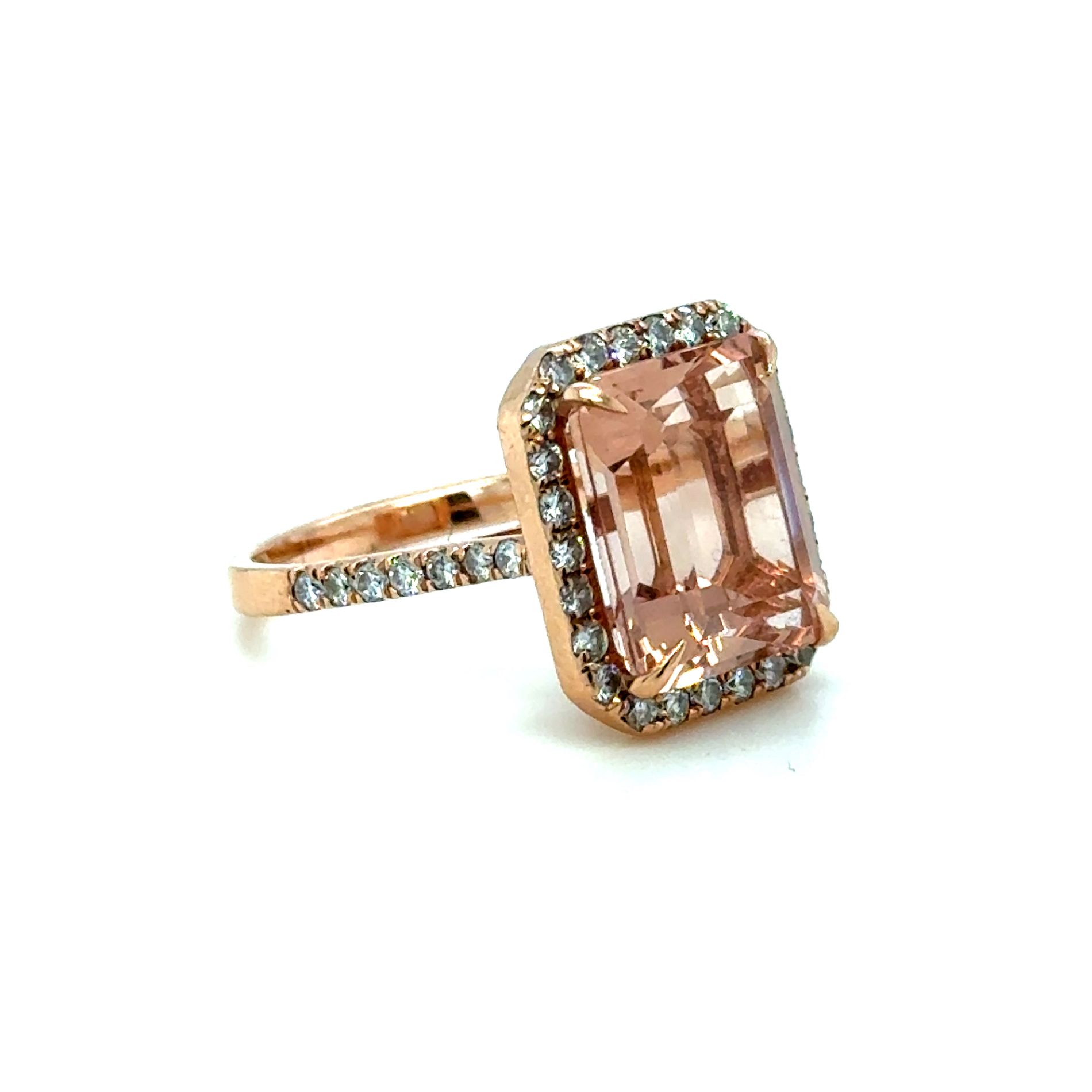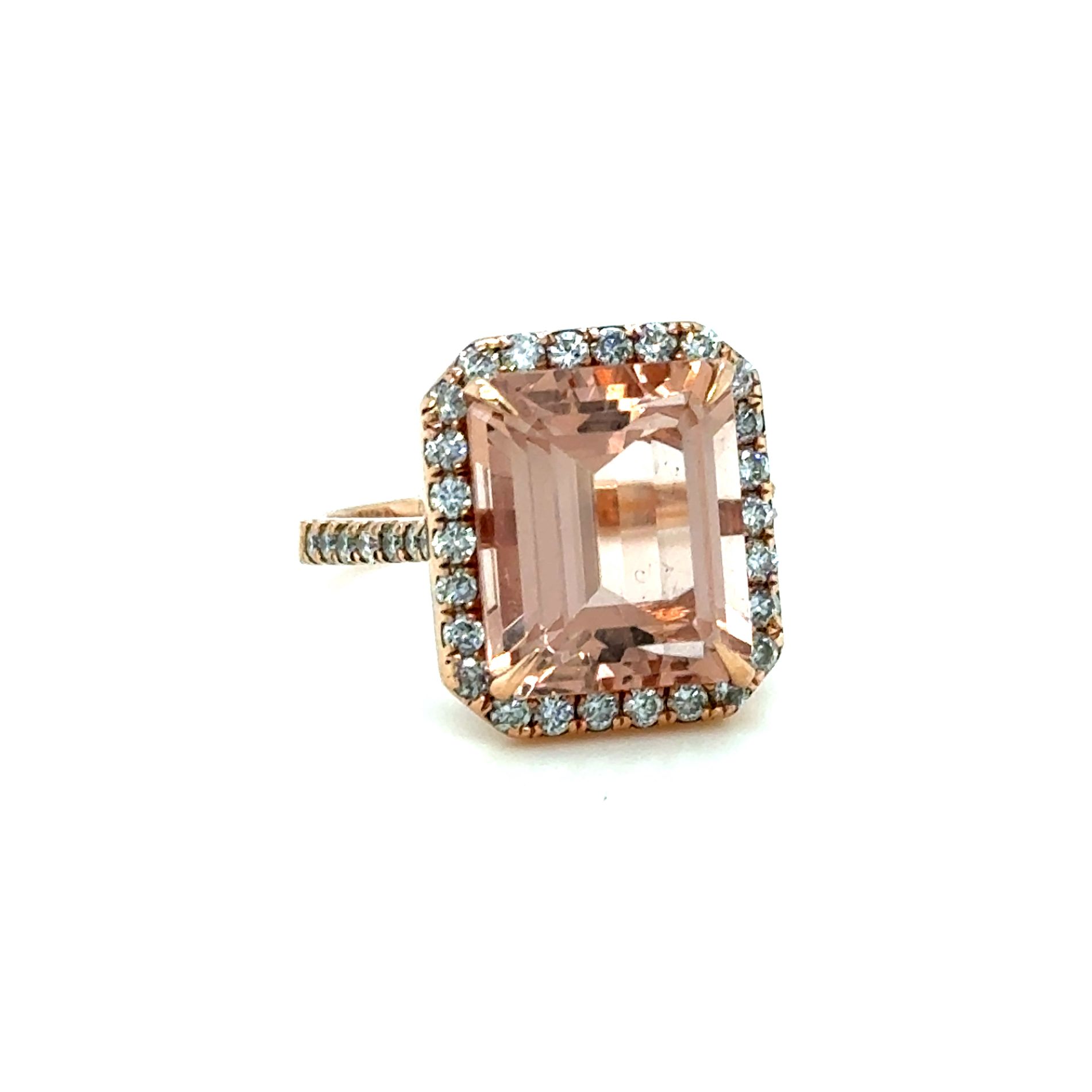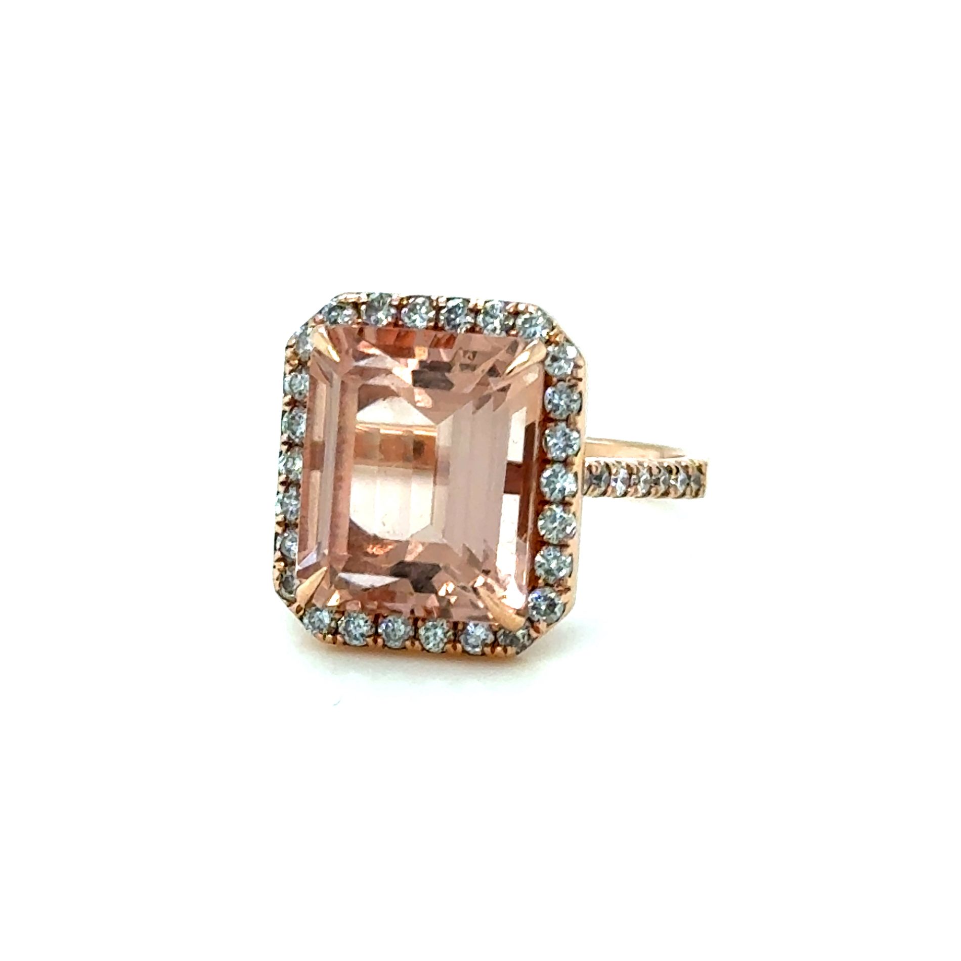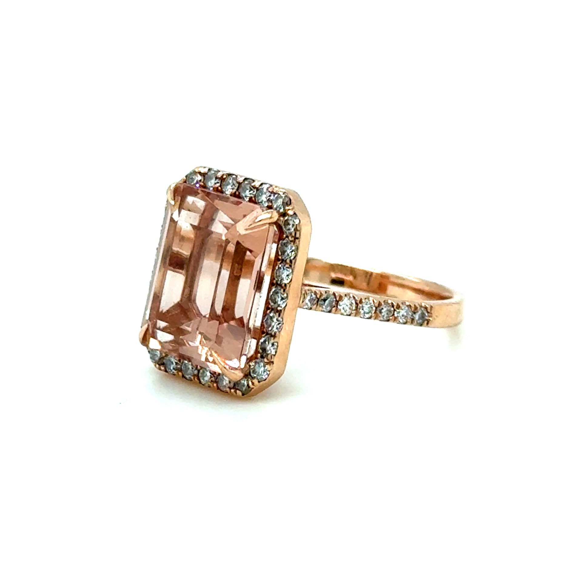 ANELLO IN ORO ROSA 14K 5,15G CON MORGANITE E DIAMANTI - E485