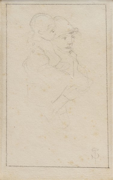 Telemaco Signorini "Giovinetto con bambino in braccio" carboncino su carta (cm