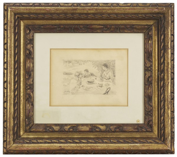Lotto 9 | Giuseppe De Nittis "Colazione in giardino" carboncino su carta (cm 11x17) firma