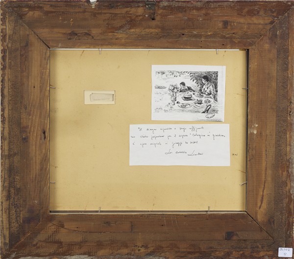 al retro: timbro, cartigli e riproduzione dell'iscrizione per autentica di Piero Dini
