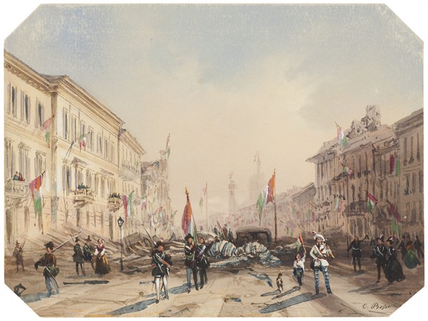 Carlo Bossoli "Episodio delle Cinque Giornate di Milano" tempera su carta (cm 1