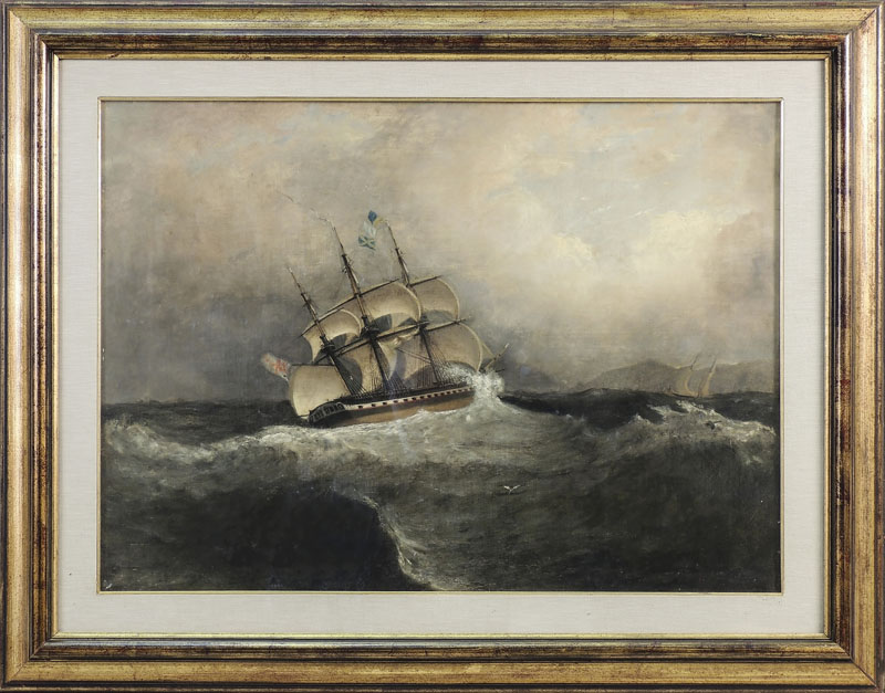 Lotto 787 | MARE IN TEMPESTA CON VELIERI olio su tela, firmato, in cornice cm 56x76 ROUGH...