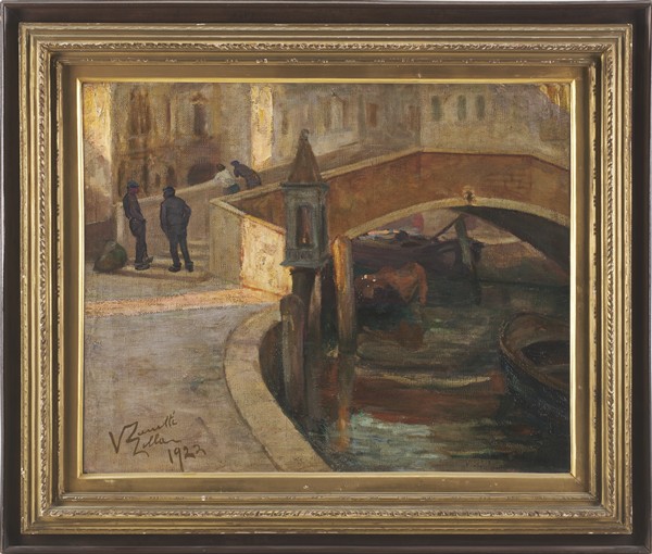 Vittore Zanetti Zilla "Scorcio veneziano" 1922 olio su tela (cm 54x66) firmato e