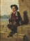 Telemaco Signorini "Pellegrino con flauto" olio su tela applicata a tavola (cm