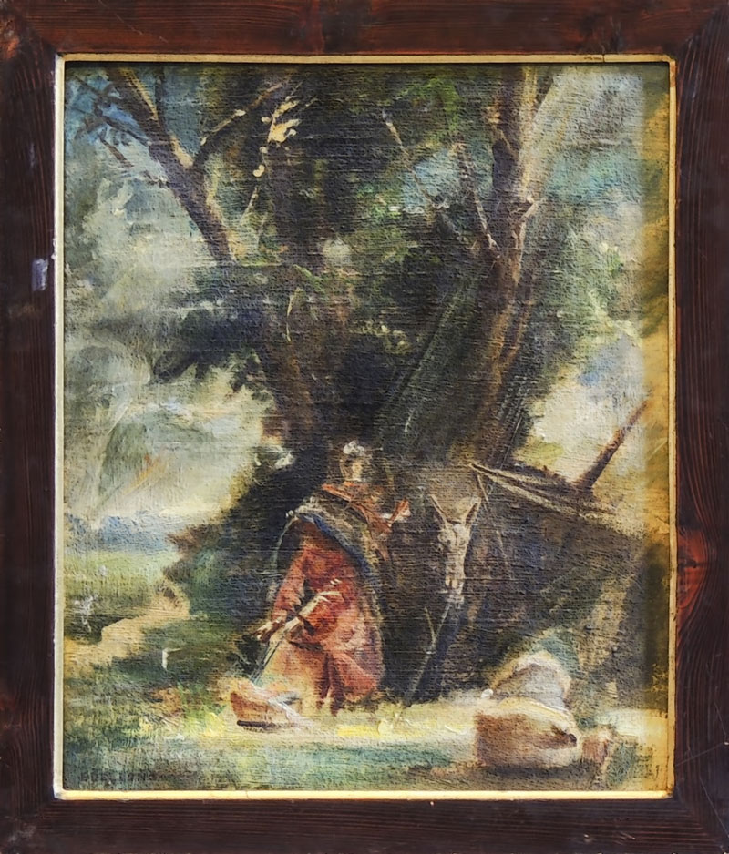 ENRICO DELBONO (1915-2006) La Fuga in Egitto olio su tela, firmato, in cornice cm 42x34 THE FLIGHT INTO EGYPT, OIL ON CANVAS